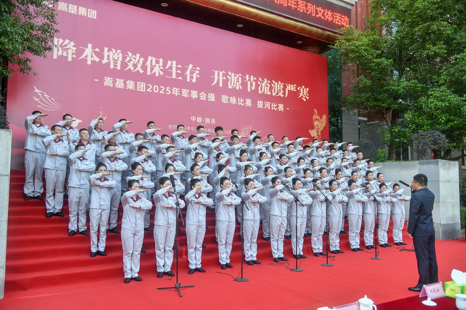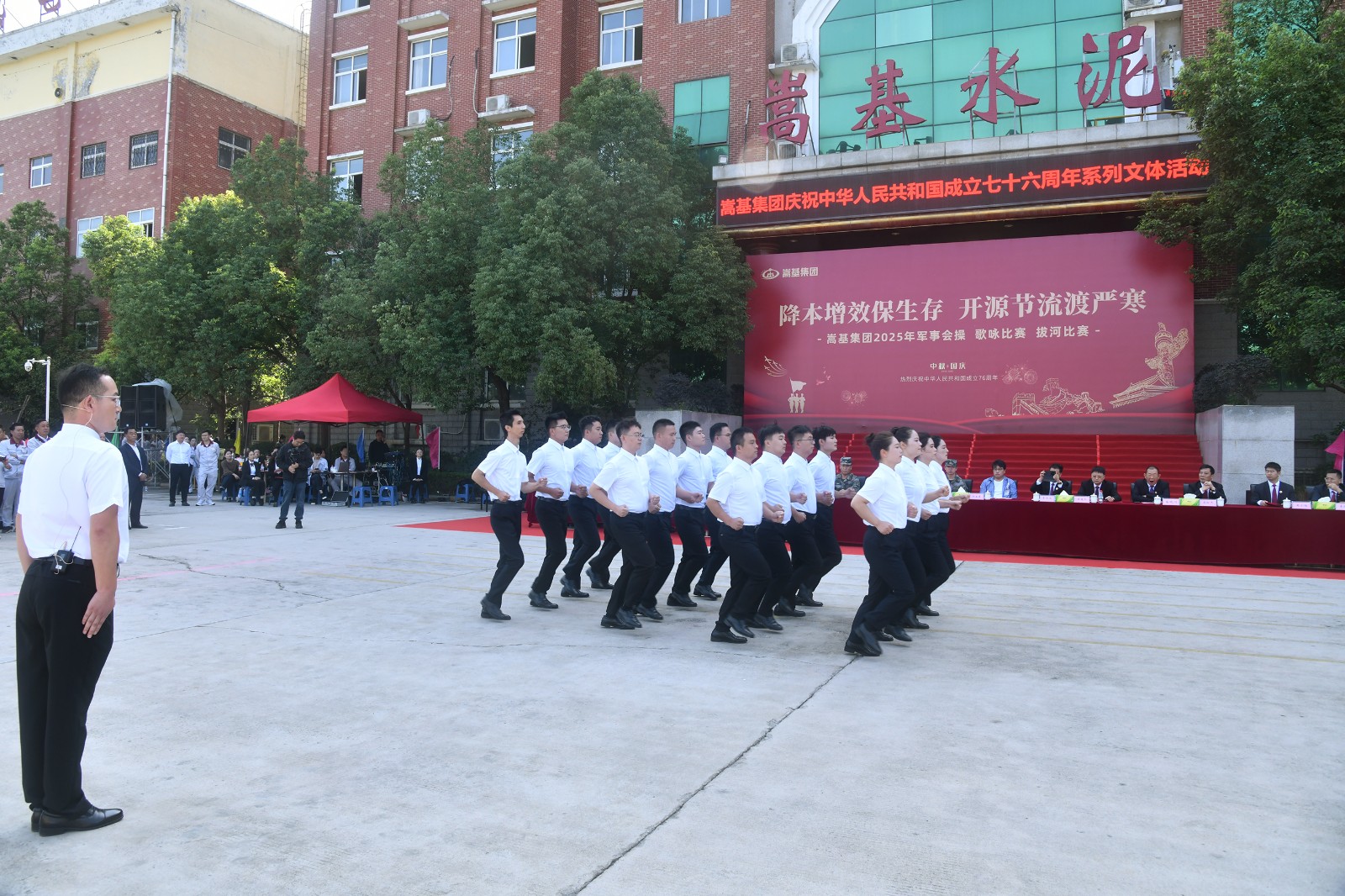 9月30日上午,嵩基集團在嵩基水泥迎賓廣場隆重舉辦以“降本增效保生存 開源節(jié)流渡嚴寒” 為主題的慶祝中華人民共和國成立76周年軍事會操、歌詠比賽及拔河比賽系列文體活動。此次活動旨在喜迎新中國76周年華誕,凝聚奮進力量,展現(xiàn)企業(yè)風貌。集團公司董事長屈松記、總經(jīng)理李天義等領導出席活動,各單位代表隊及觀摩人員510余人參加。
